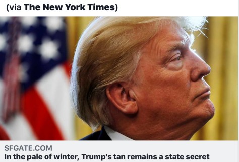 WASHINGTON, D.C. (The Adobo Chronicles, Washington Bureau) – “In the pale of winter, Trump’s tan remains a state secret,” writes SFGATE.com.