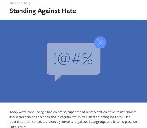 MENLO PARK, California (The Adobo Chronicles, San Jose Bureau) – Social Media giant Facebook today announced a ban on praise, support and representation of white nationalism and separatism on its platform as well as on Instagram.