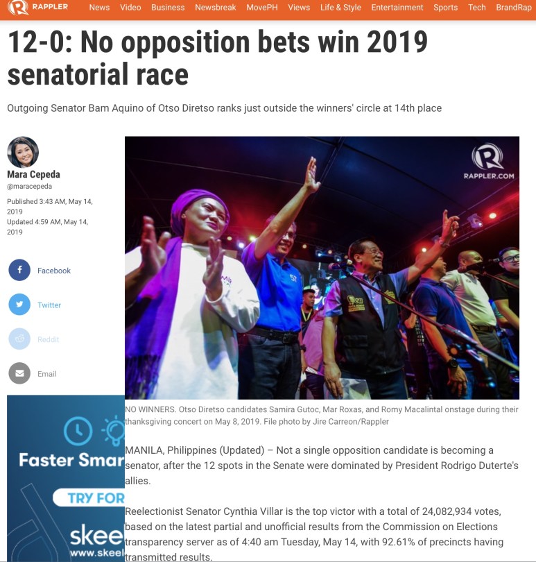 May 13, 2019 1683 × 1764 Rappler Concedes Senatorial Race On Behalf Of Otso Diretso