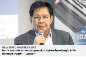 MANILA, Philippines (The Adobo Chronicles, Manila Bureau) –Senator Panfilo Lacson on Tuesday said the government should not wait for armed aggression to happen in the West Philippine Sea (WPS) before invoking the Mutual Defense Treaty (MDT) between the Philippines and the United States (US).