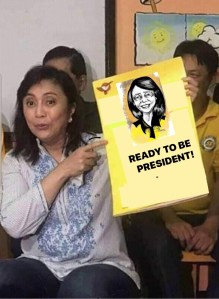 In a wise move that would allow her to circumvent Comelec (Commission on Elections) rules against early campaigning, her propaganda team designed the poster with her carricature but not her name. The poster simply says “Ready to be President.”