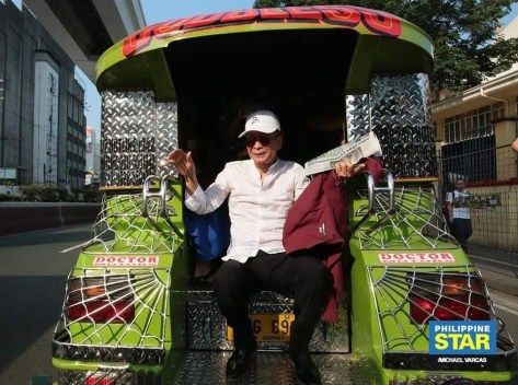 At issue is Panelo’s PR stint in which he was photographed sitting on the steps of a jeepney (see photo) as part of his public commute to Malacanang Palace.