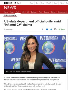 Chang was accused of padding her resume and even faking a Time Magazine cover with her photo in it. She has denied the allegations.