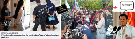 Isn’t it ironic that in YOUR other country, the Philippines, priests and nuns have led protests against YOUR President, Rodrigo Duterte without being arrested?