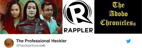 Meanwhile, we, at The Adobo Chronicles — highly perceived as pro-Duterte — can confrm that we are joining the ranks of Mainstream News Media while our rival, the pro-Yellow blog, Rappler, is reinventing itself as satire. By doing so, Rappler and its CEO Maria Ressa could be cleared of charges stemming from violation of the Constitution which prohibits foreign ownership of meda companies. Rappler will, consequently, be classified by the Securities and Exchange Commission as “Entertainment.”
