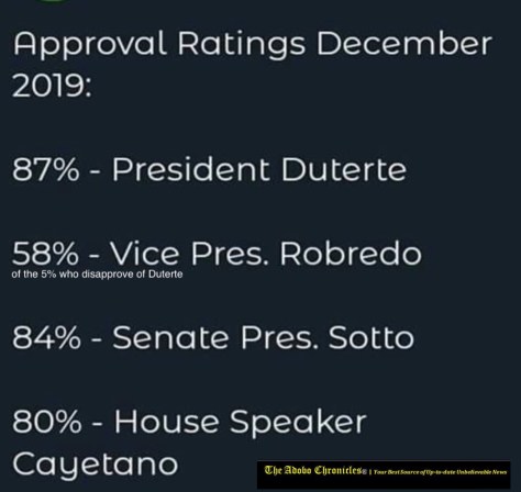 MANILA, Philippines (The Adobo Chronicles, Manila Bureau) – The latest False Asia poll shows that the approval ratings of the Philippines top officials have increased. Except for Vice President Leni Robredo.