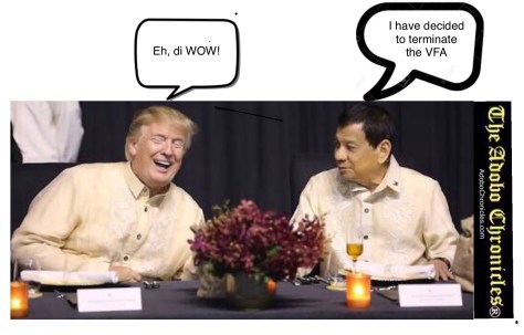 WASHINGTON, D.C. (The Adobo Chroncles, Manila Bureau) – There is no love lost between U.S. President Donald Trump and Philippine President Rodrigo Duterte, even after the latter decided to end the Visiting Forces Agreement (VFA) between the two countries.