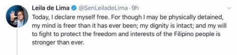 The Sentors got the news from De Lima herself: