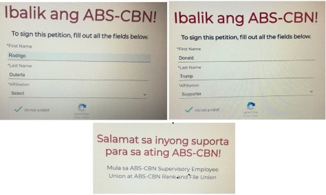 Supporters and sympathizers of the network may sign the petition by logging on to kapamilyaforever.com. They can vote as many times as they want, even if they are robots.
