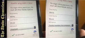 QUEZON CITY, Philippines (The Adobo Chronicles, Quezon City Bureau) – The ABS-CBN Rank and File Employees’ Union and the ABS-CBN Supervisory Employees’ Union have denounced efforts to sabotage their online petition asking legislators to renew their network’s broacasting franchise.