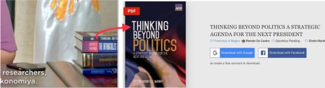One of the books her handlers displayed at the video-taped address was titled “Thinking Beyond Politics,” authored by Francisco Magno.