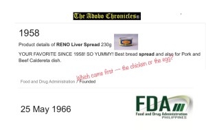 Reno liver spread has been enjoyed by Filipinos since 1958. The FDA was founded only in 1966.