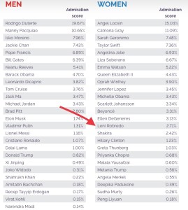 This is the second year that both ranked first together in YouGov’s “World’s Most Admired” list among the women.