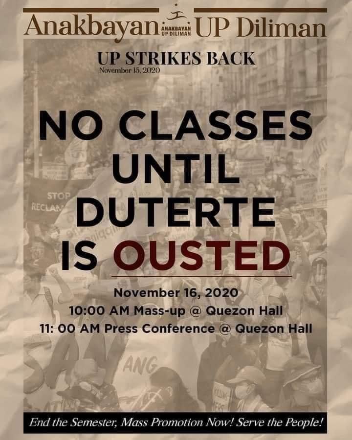 In response, Duterte said he will soon sign an Executive Order that will convert the entire U.P. Diliman campus into a permanent calamity evacuation center for Metro Manila to enable the government to better respond to natural disasters like the floods brought about by the recent typhoon, Ulysses.