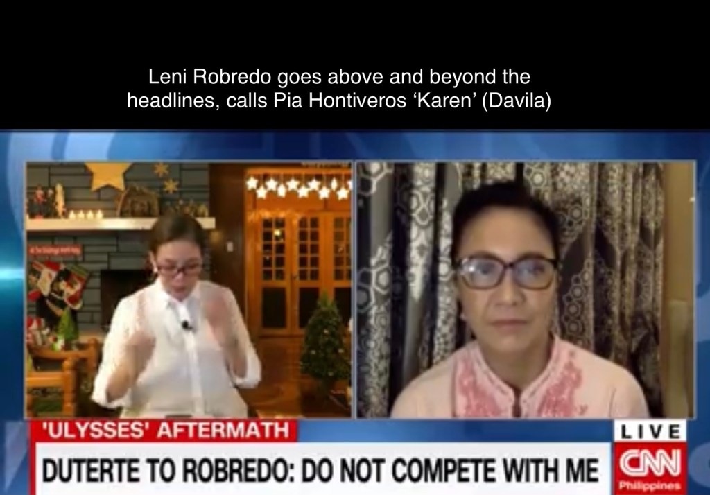 So you can just imagine CNN Philippines’ Pia Hontiveros’ consternation when Vice President Leni Robredo called her ‘Karen.’