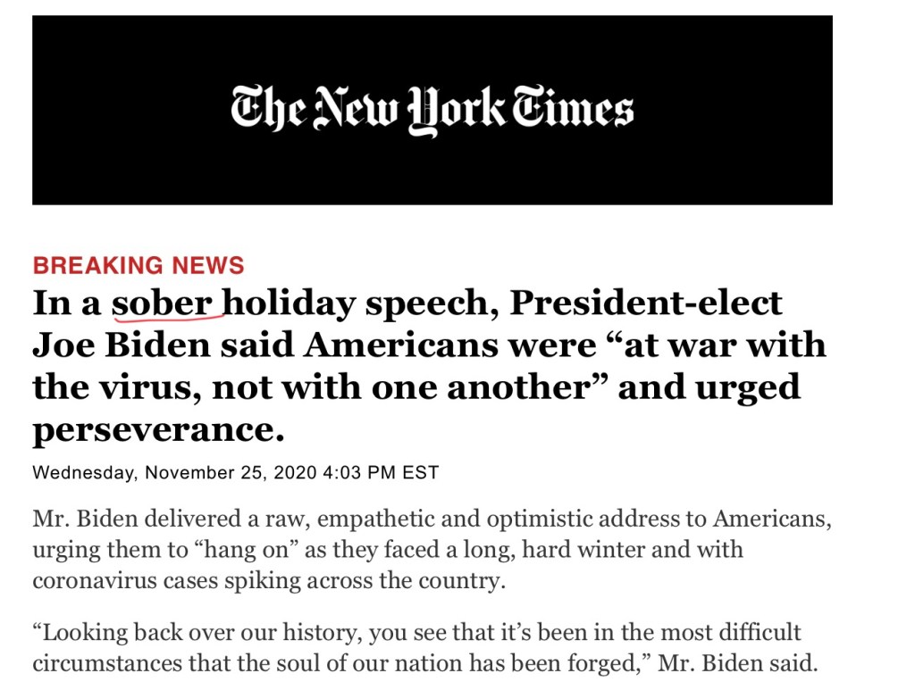 But the good news is, the Times reported that when Biden delivered his message, he was “sober.”