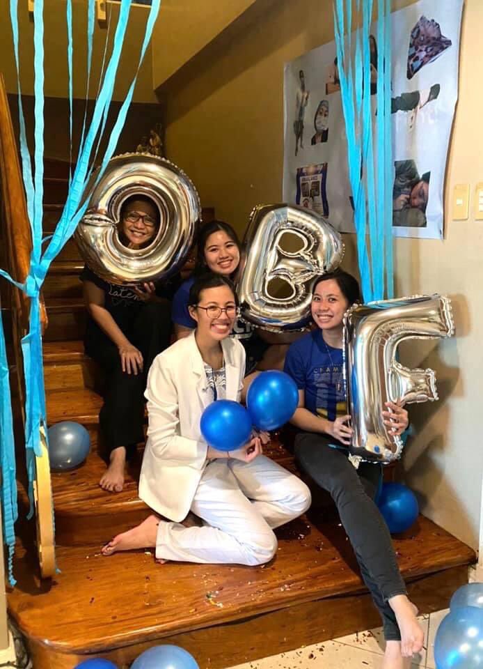The second family of all girls was celebrating Tricia’s passing of the Physician Licensure Exam by holding up huge balloons that was supposed to spell OVP ( Office of the Vice President) for that proverbial photo op. Alas, they held up balloons that spelled “OBF.”