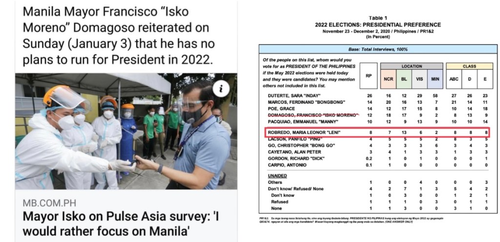 This developed as Manila Mayor Isko Moreno reiterated he has no plans of running for President in 2022.