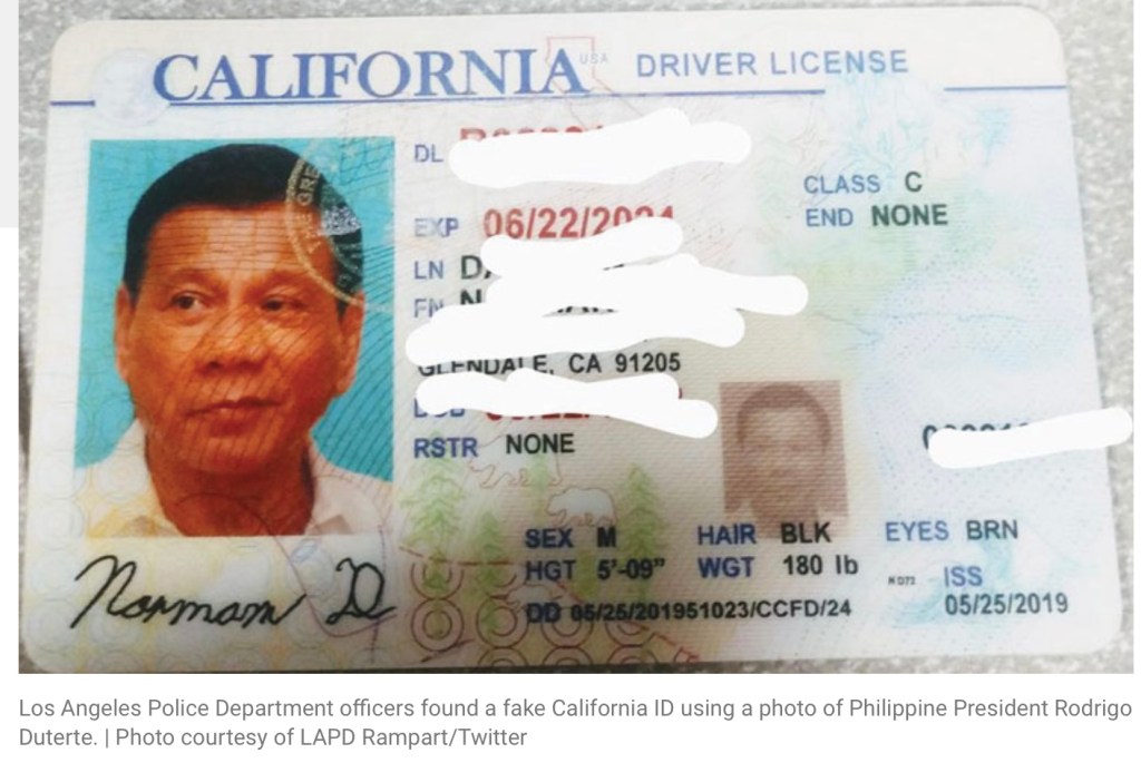 “It’s either Duterte stole and faked the license of Norman D, or Norman D faked his license using Duterte’s photo,” LAPD said.
