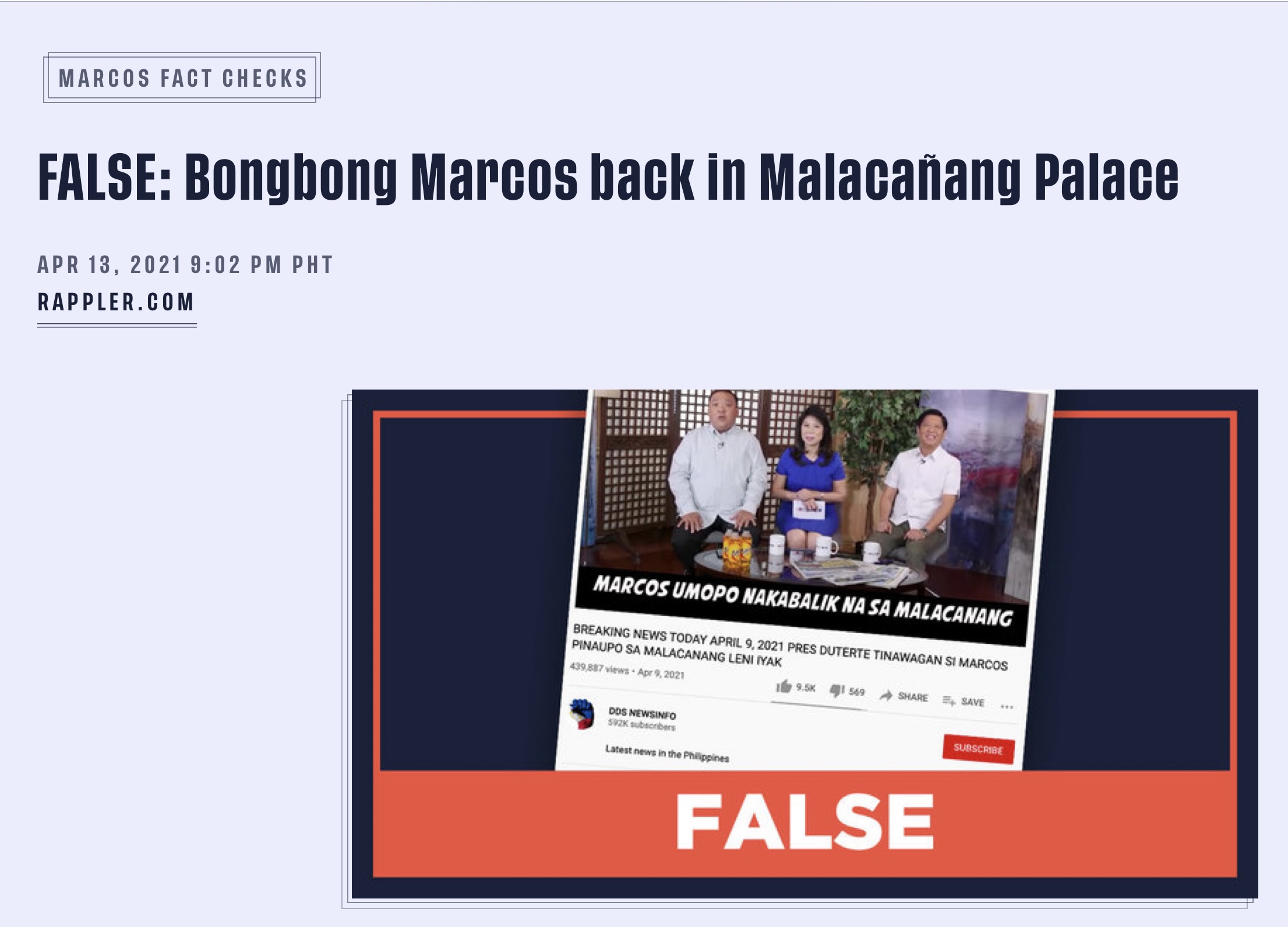 MANILA, Philippines (The Adobo Chronicles, Manila Bureau) – Following a Rappler fact check on its website belying claims that Ferdinand Marcos, Jr. (Bongbong) has returned to Malacañang, it now appears that Vice President Leni Robredo is the one who has returned to the Palace.