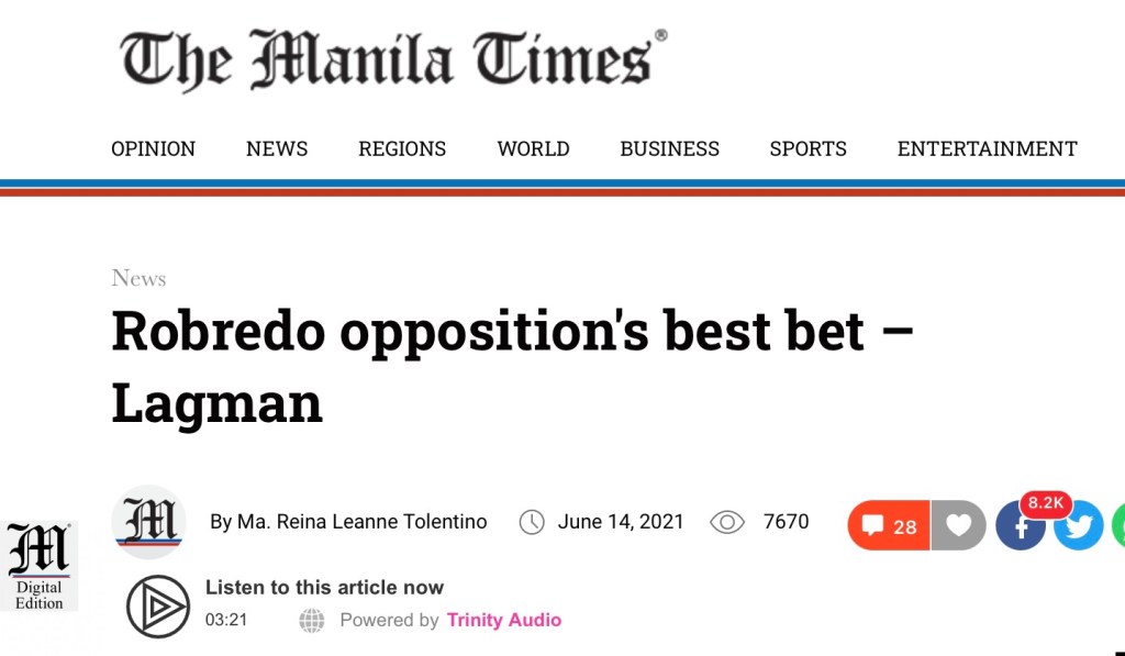 MANILA, Philippines (The Adobo Chronicles, Manila Bureau) – After all, the Liberal Party’s best bet for President in the 2022 elections is not its chairperson Leni Robredo. Rather, it is Congressman Edcel Lagman of the 1st District of Albay, according to a party consensus.