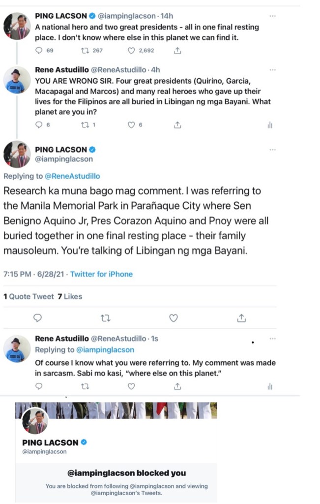 Senator Ping Lacson’s Twitter Conversation With Our Publisher