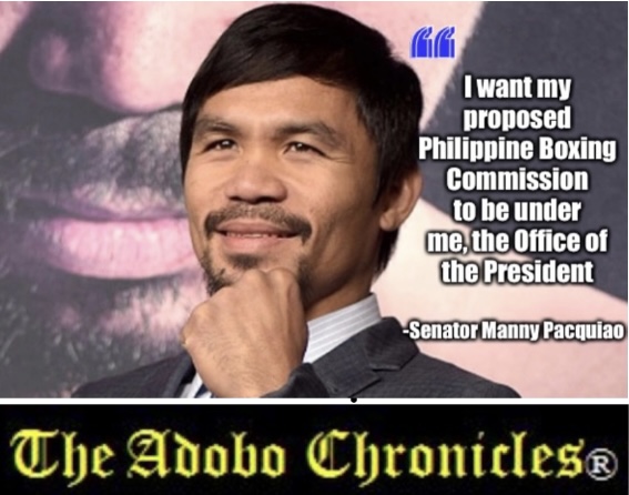 MANILA, Philippines (The Adobo Chronicles, Manila Bureau) – Senator Manny Pacquiao wants his proposed Philippine Boxing Commission (PBC) to be under his office!
