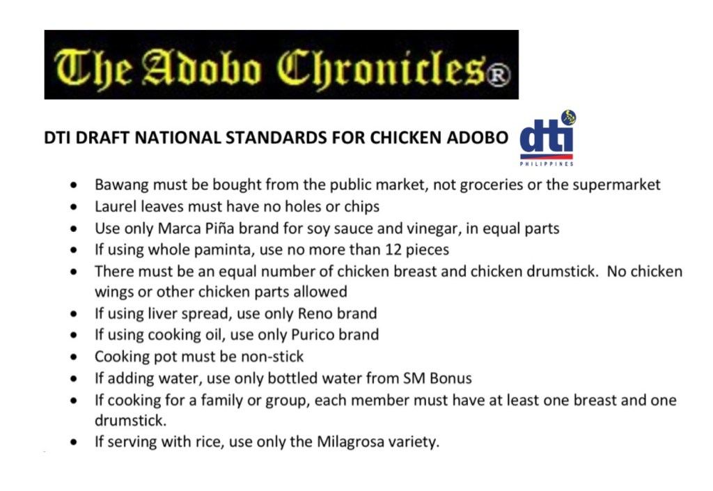 DTI Committee Releases First Draft Of NATIONAL STANDARD FOR CHICKEN ADOBO