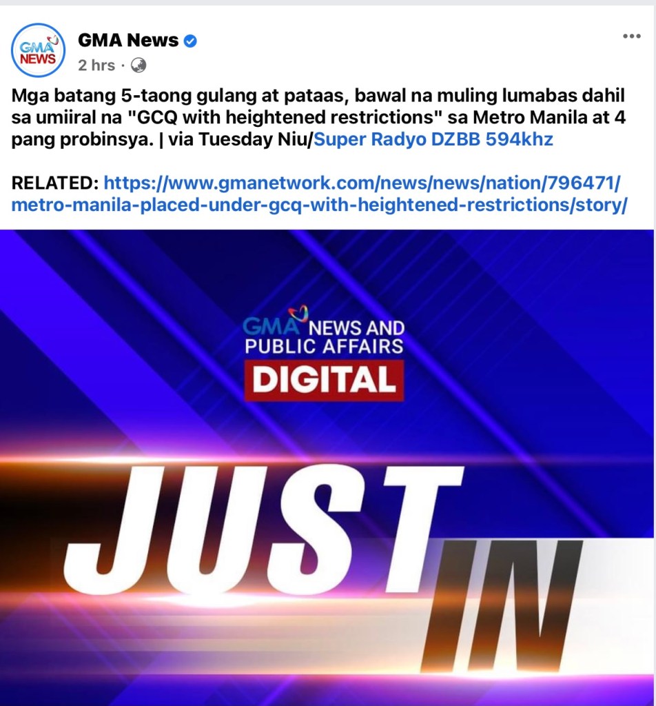 MANILA, Philippines (The Adobo Chronicles, Manila Bureau) – GMA News is reporting that the Inter-Agency Task Force (IATF) for Emerging Infectious Diseases has reinstated the ban on children 5 years old and above from leaving their homes.