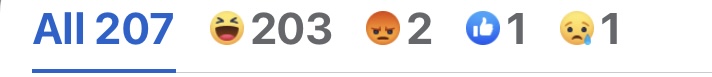 The result: 203 of respondents replied with the laughing emoticon and only one responded with the thumbs up emoticon (which pretty much cancels itself because of the margin of error.) Three responses were considered void because they didn’t follow instructions. One commented with a tearful emoticon and two with an angry emoticon.