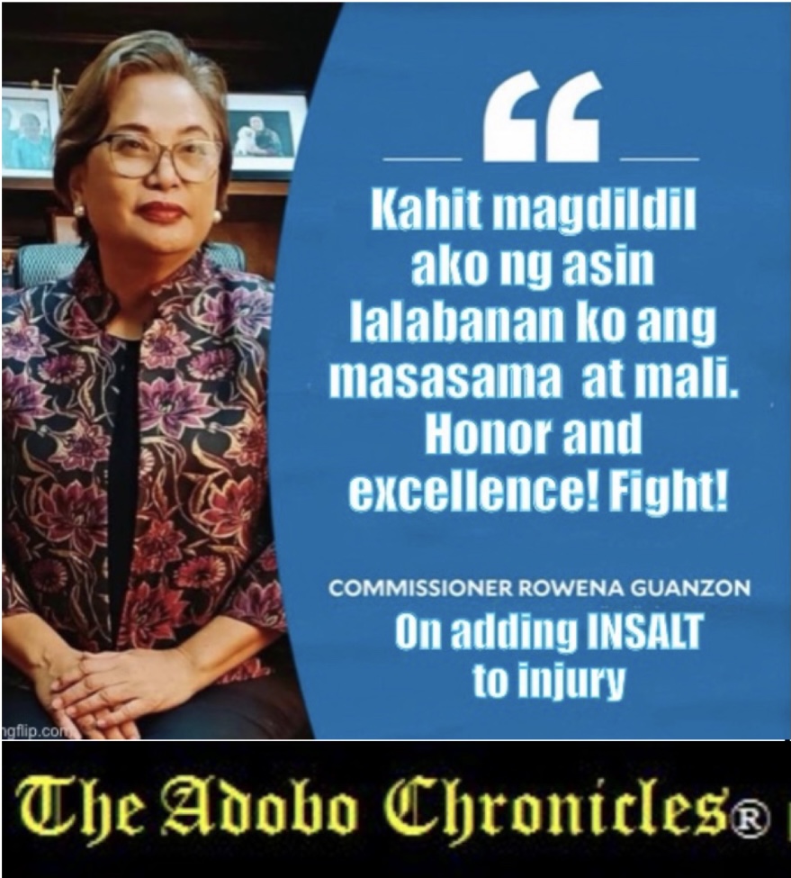 ”Kahit magdildil pa ako ng asin,” (even if I have lick salt), Guanzon said she will fight for honor and excellence, practically adding inSALT to injury.