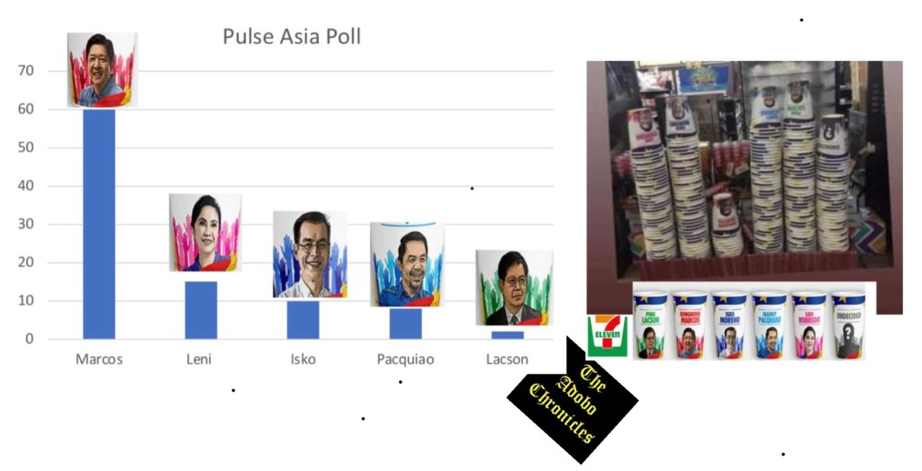 MANILA, Philippines (The Adobo Chronicles, Manila Bureau) –Former Senator and presidential aspirant Bongbong Marcos again has a commanding lead in the latest Pulse Asia poll, garnering a 60% of the votes of respondents compared to Vice President Leni Robredo’s 15% distant second.