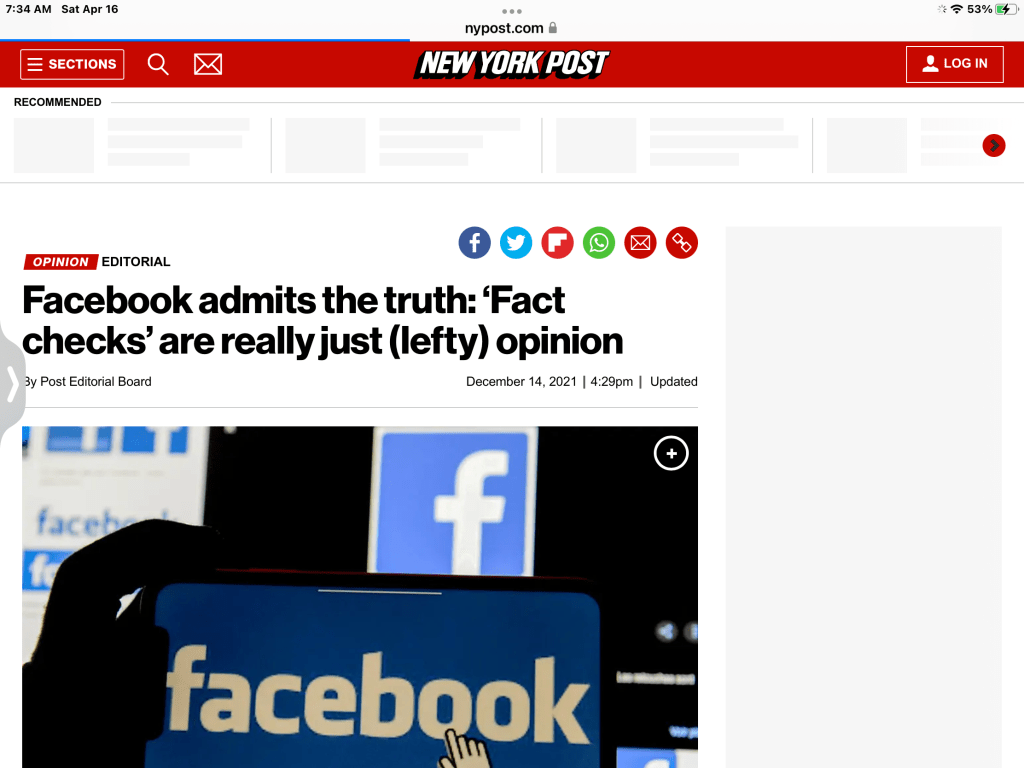 The announcement came weeks after Facebook admitted in court documents that its fact-checking partners were actually just expressing their opinion when tagging accounts, posts and comments. That’s thanks to a lawsuit brought by celebrated journalist John Stossel, which has exposed the left’s supposed battle against “misinformation” as a farce.