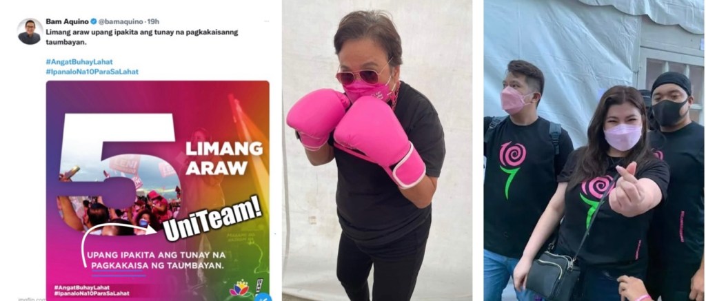-As if conceding the race to Bongbong Marcos and Sara Duterte, campaign manager Bambam Aquino urged their supporters to stand firmly behind the unity message of the UniTeam. A graceful exit, so to speak.