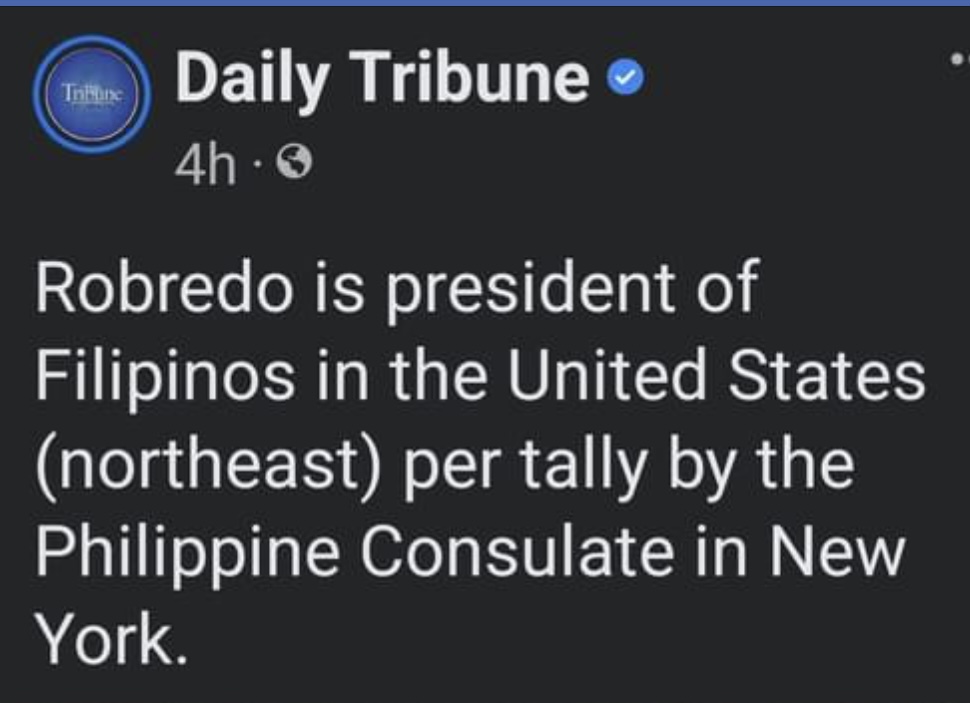 NEW YORK, New York (The Adobo Chronicles, New York Bureau) – Bongbong Marcos may have won the Philippine presidential race with an impressive majority vote of 31 million, but Vice President Leni Robredo has been proclaimed president of the northeastern United States.