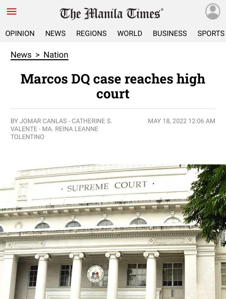 MANILA, Philippines (The Adobo Chronicles, Manila Bureau) – A DQ case ordered by presumptive President Bongbong Marcos was inadvertently delivered to the Supreme Court on Padre Faura in Manila.