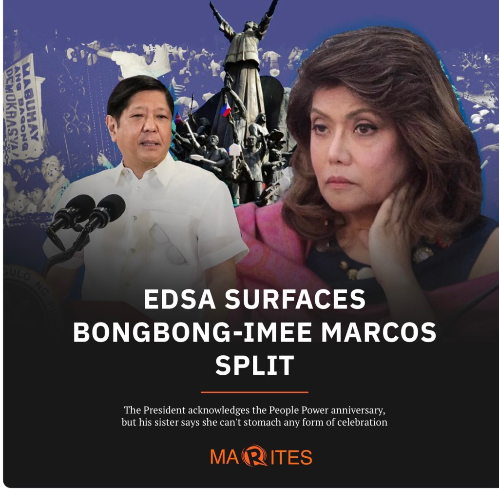 For starters, Rappler posted a story graphic claiming that there is a rift between Bongbong and Imee Marcos. The “story” coincided with the 37th anniversary of the EDSA People Power Revolution.