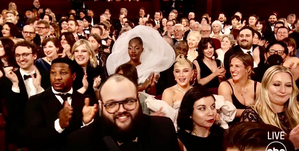 But for at least 9 people, Oscar Night was a nightmare, with their view of the stage and ceremonies totally obstructed by the designer gown worn by Grammy winner Tems, a Nigerian singer and songwriter.