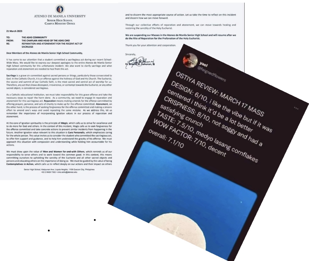 QUEZON CITY, Philippines (The Adobo Chronicles, Quezon City Bureau) – Catholic University Ateneo De Manila University suspended its High School masses after a student posted a “review” of the Eucharistic host distributed at one of its services.