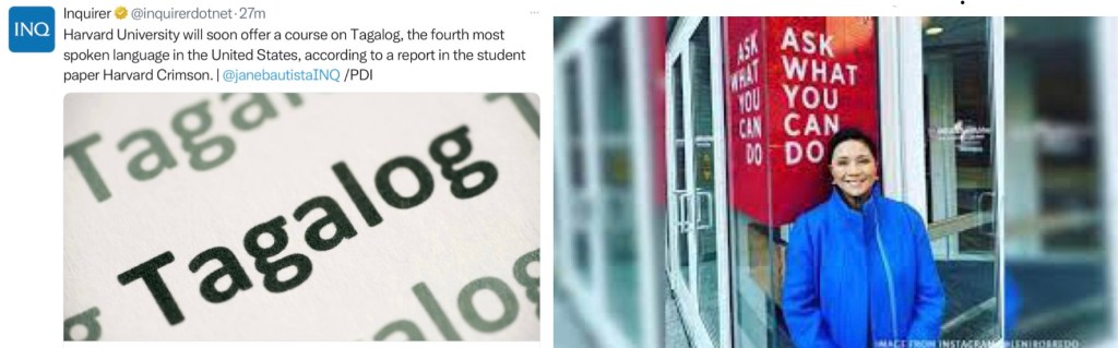 Robredo has been tapped by to teach the Tagalog Language which Harvard will be offering soon. Tagalog is the fourth most-spoken language in the United States.