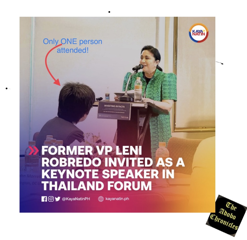 BANGKOK, Thailand (The Adobo Chronicles, Bangkok Bureau)- It was supposed to be a very prestigious international forum in Thailand, attended by hundreds of diplomats, entrepreneurs and academicians, but it turned out to be one of Leni Robredo’s most embarrassing moments in her political career.
