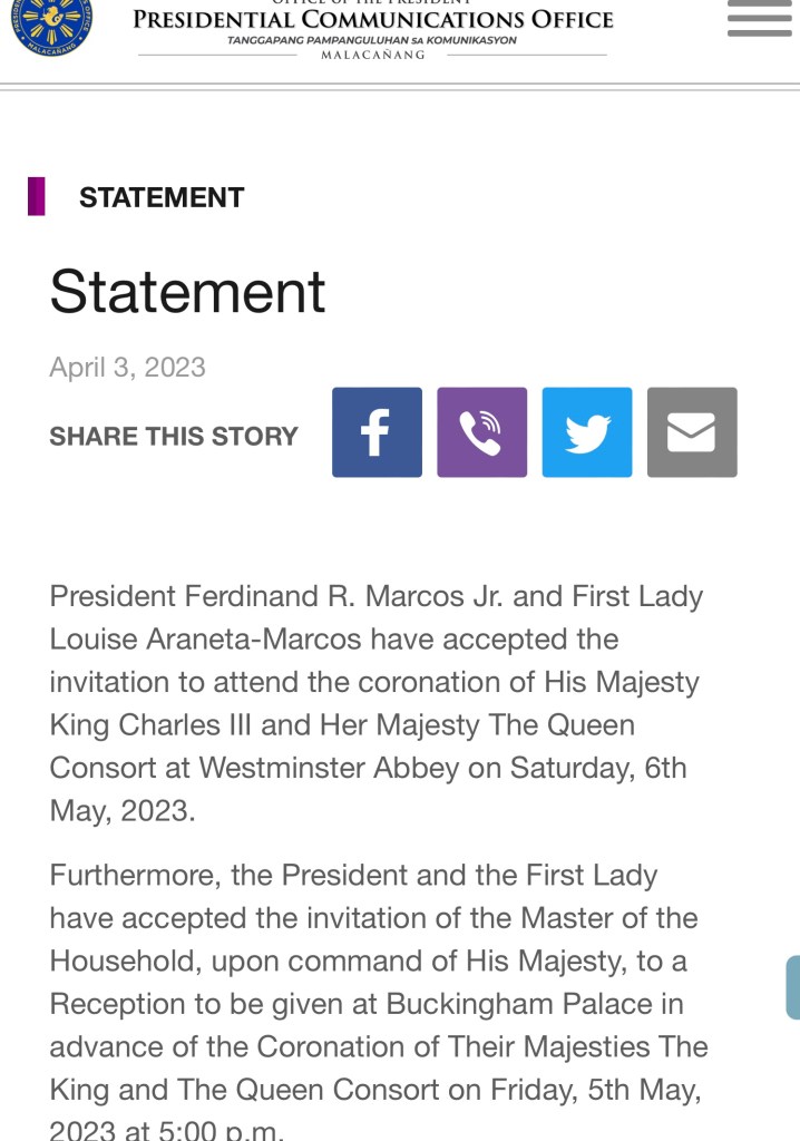 MANILA, Philippines (The Adobo Chronicles, Manila Bureau) – Just minutes after Malacañang Palace announced that Bongbong Marcos has accepted the invitation to attend the coronation of King Charles in London, critics, wokes and sour-grapers immediately flooded social media with complaints about yet another Presidential foreign trip at taxpayers’ expense.