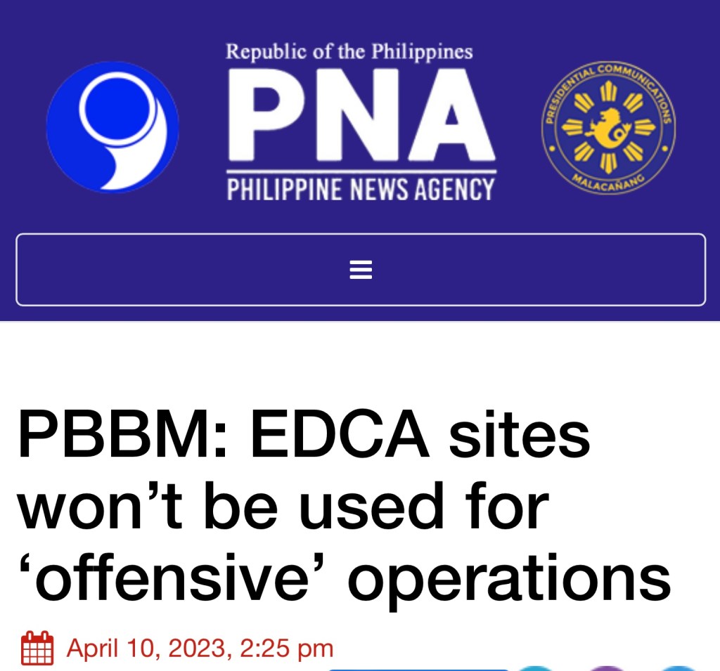 WASHINGTON, D.C. (The Adobo Chronicles, Washington D.C. Bureau) – The United States has withdrawn from EDCA – Enhanced Defense Cooperative Agreement – just hours after Philippine President Bongbong Marcos said that the U.S. military bases cannot be used for any American aggression.