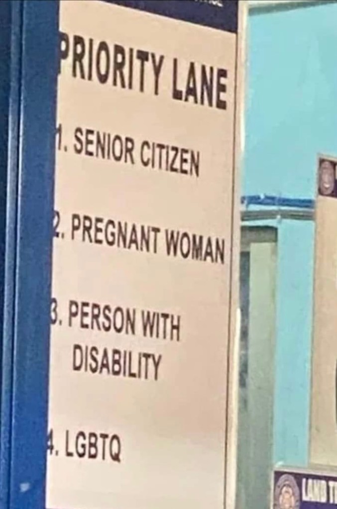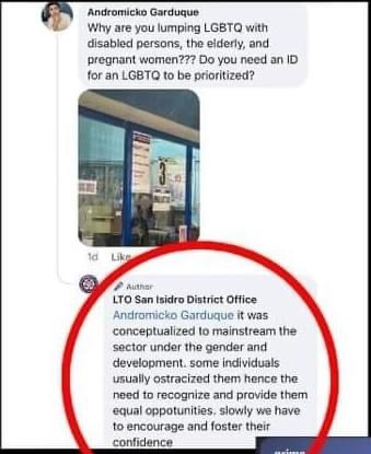These were the lingering questions that followed a viral photo showing that in a Land Transportation Office (LTO) district office, LGBTQ was included in a service priority lane, along with senior citizens, persons with disability and pregnant women.