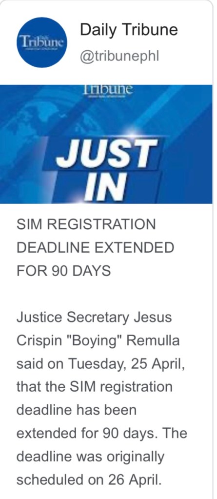 MANILA, Philippines (The Adobo Chronicles, Manila Bureau) – Well, it happened as expected. The deadline for the registration of SIM cards has been extended by the government for 90 days.