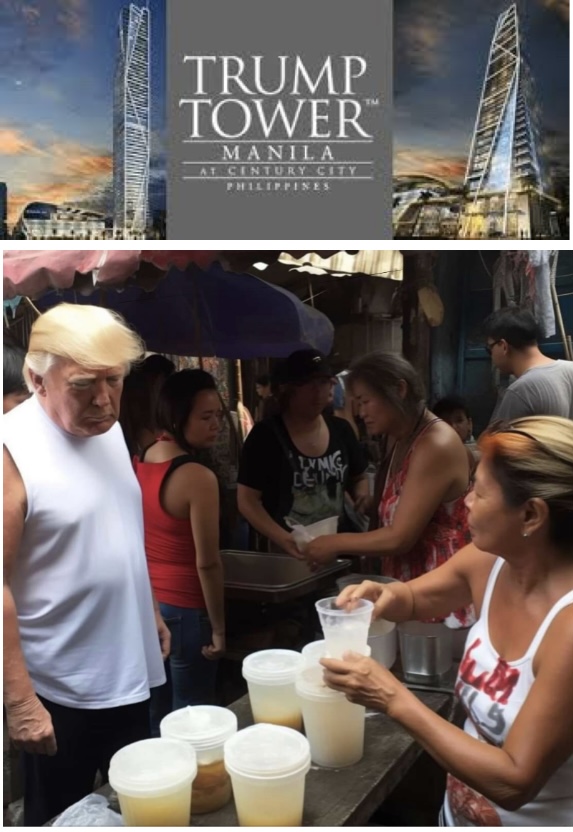 MANILA, Philippines (The Adobo Chronicles, Manila Bureau) – Ex-US President Donald Trump can’t take the heat from his indictment in New York, so he took some time off to visit the Trump Towers in Manila’s Century City.