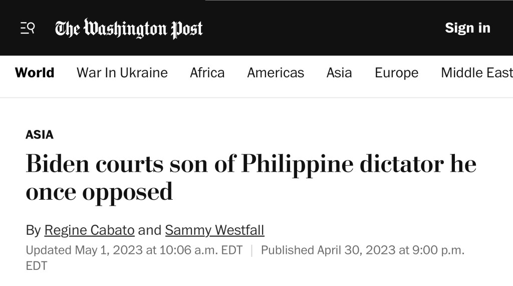 Take it from The Washington Post. It is reporting that U.S. President Joe Biden is now “courting” the son of a “dictator he once opposed.”