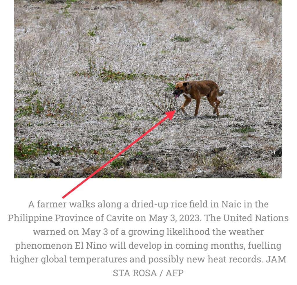 Case in point: in a photo caption describing the possible negative effects of El Niño, AFP described as a “Filipino farmer” a dog walking through a drought-ridden field in the Philippines.