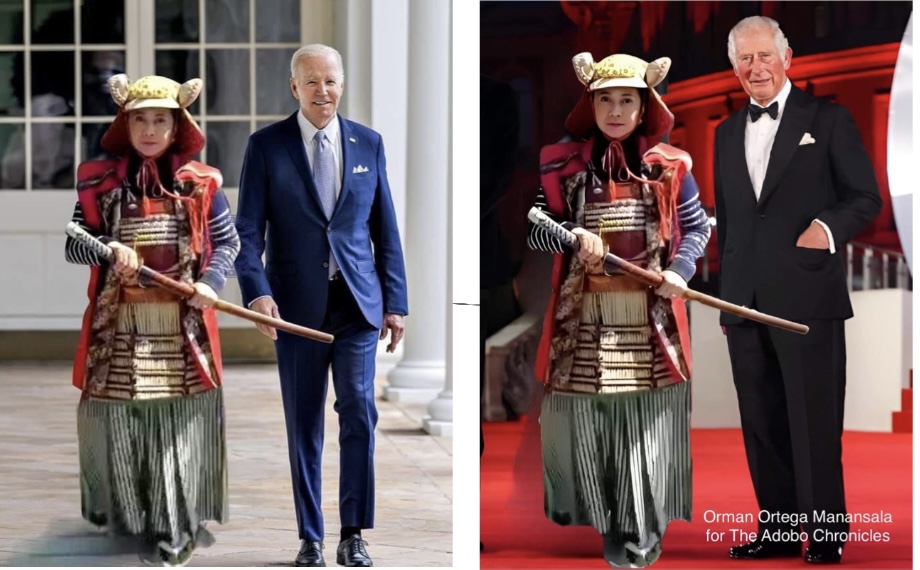 LONDON, The United Kingdom (The Adobo Chronicles, London Bureau) – Wherever Philippine President Bongbong Marcos goes, ex-Vice President Leni Robredo goes! And she does it in full regalia: as her favorite cosplay character, the Samurai warrior(ess).
