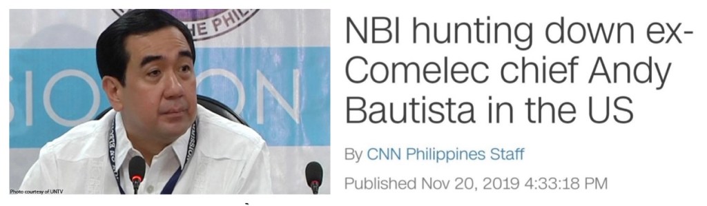 SAN FRANCISCO, California (The Adobo Chronicles, San Francisco Bureau) – It’s been four years since the Philippines’ National Bureau of Investigation (NBI) announced that it was hunting former Comelec Chair Andy Bautista in the U.S.